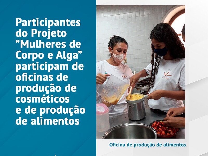 Participantes do Projeto “Mulheres de Corpo e Alga” participam de oficinas de produção de cosméticos e de produção de alimentos